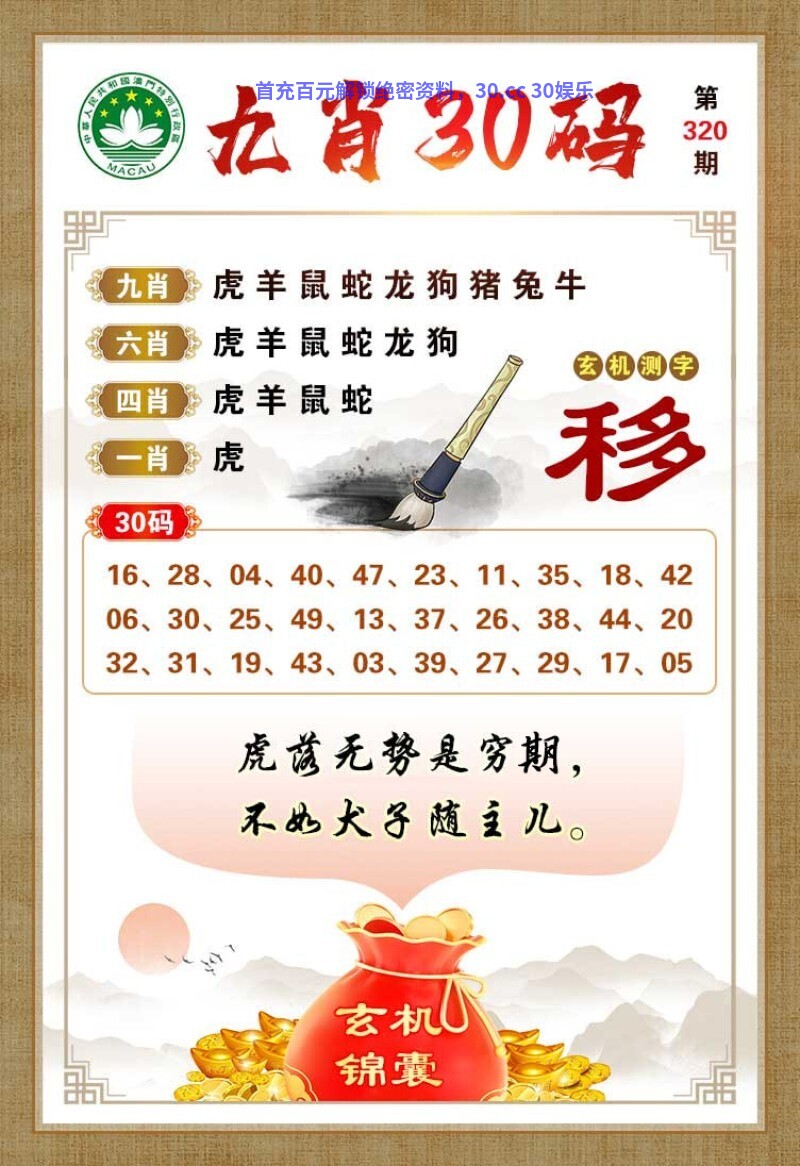 | 320期 | 马 | 蓝波双 | 1头单 | 虎28 |