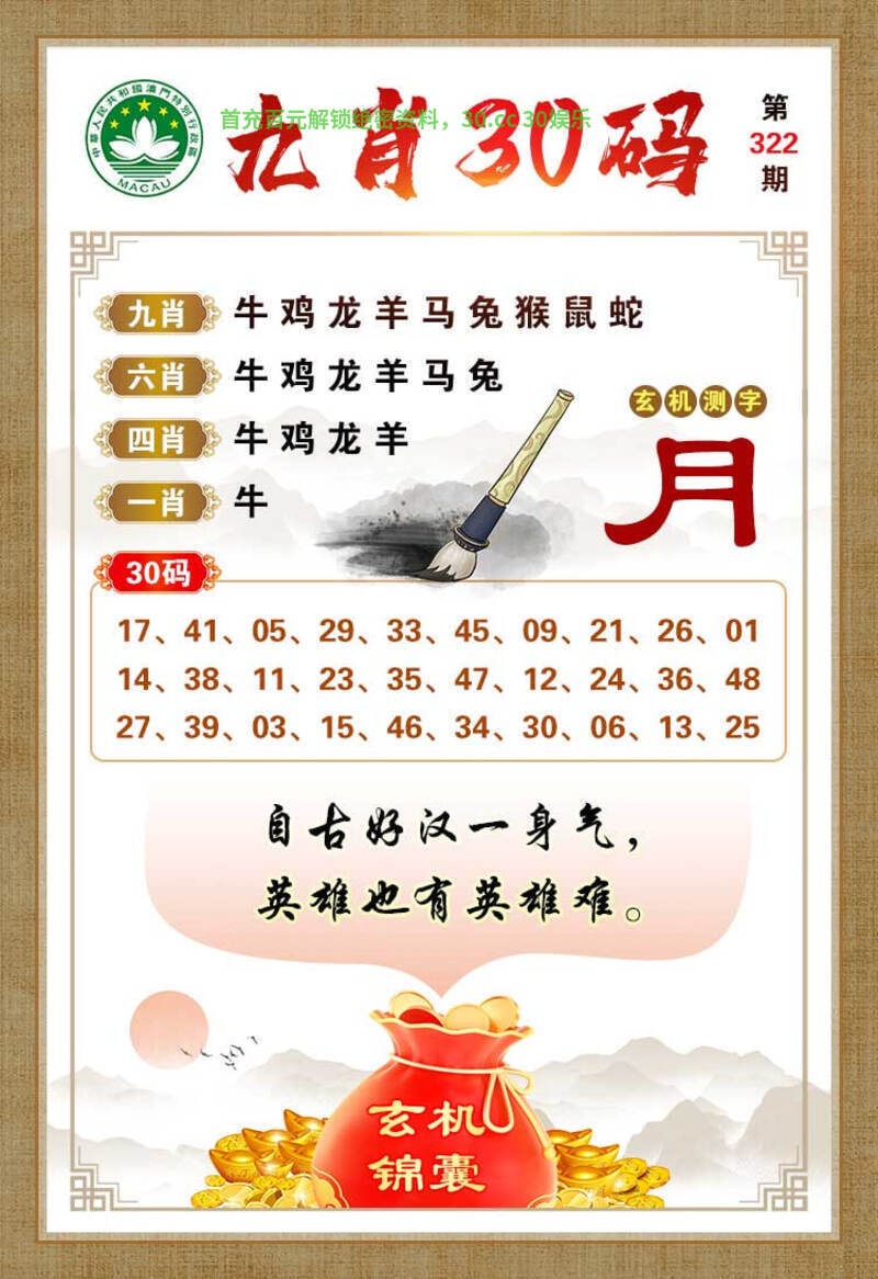 | 322期:⑨码 | 42.03.36.41.08.21.47.31.10 | 开:羊47 |